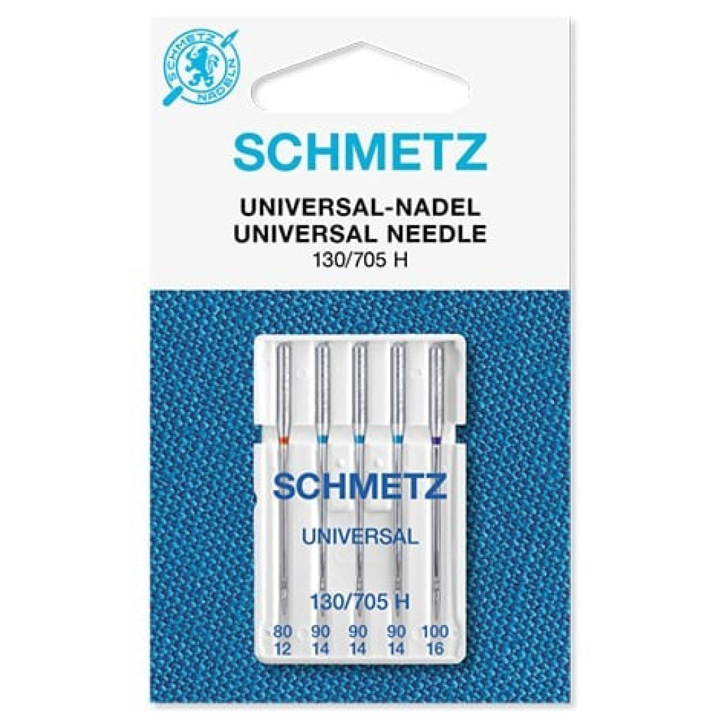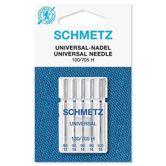 Голки Schmetz Universal 130/705 H №80x1, 90x3, 100x1, 5 шт, універсальні, для побутових швейних машин, на картонній основі