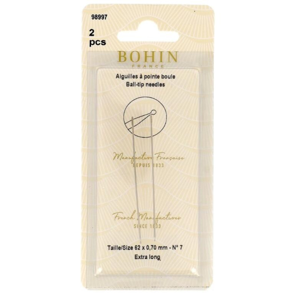 Голка Ball point призначена для роботи з трикотажем та еластичними тканинами. Заокруглене вістря м’яко розсуває волокна, а не проколює їх, завдяки чому шви виходять акуратними, без затяжок і пошкоджень полотна.