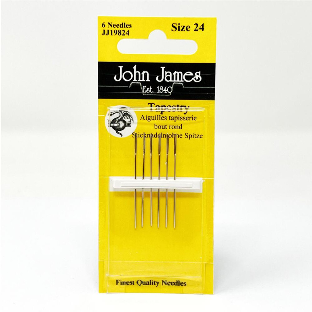Гобеленові голки John James № 24 — це спеціалізовані ручні голки, призначені для вишивки хрестиком, гобеленової техніки та роботи з канвою. Вони мають велике вушко для зручного заправлення нитки та тупий округлий кінчик, що дозволяє голці легко проходити між волокнами тканини, не пошкоджуючи її.