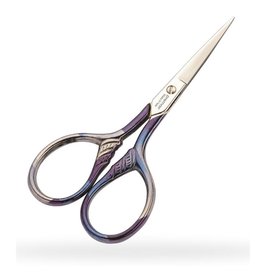 Premax — компактні італійські ножиці, створені для ювелірних підрізань біля полотна у вишиванні. Тонкий носик і точна заводська заточка забезпечують чистий зріз без затяжок на нитках і делікатних тканинах, а плавний хід лез робить роботу комфортною навіть під час тривалих сеансів.