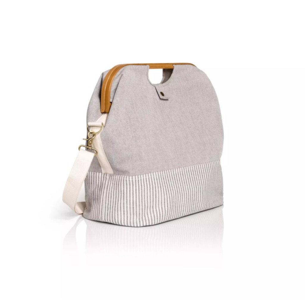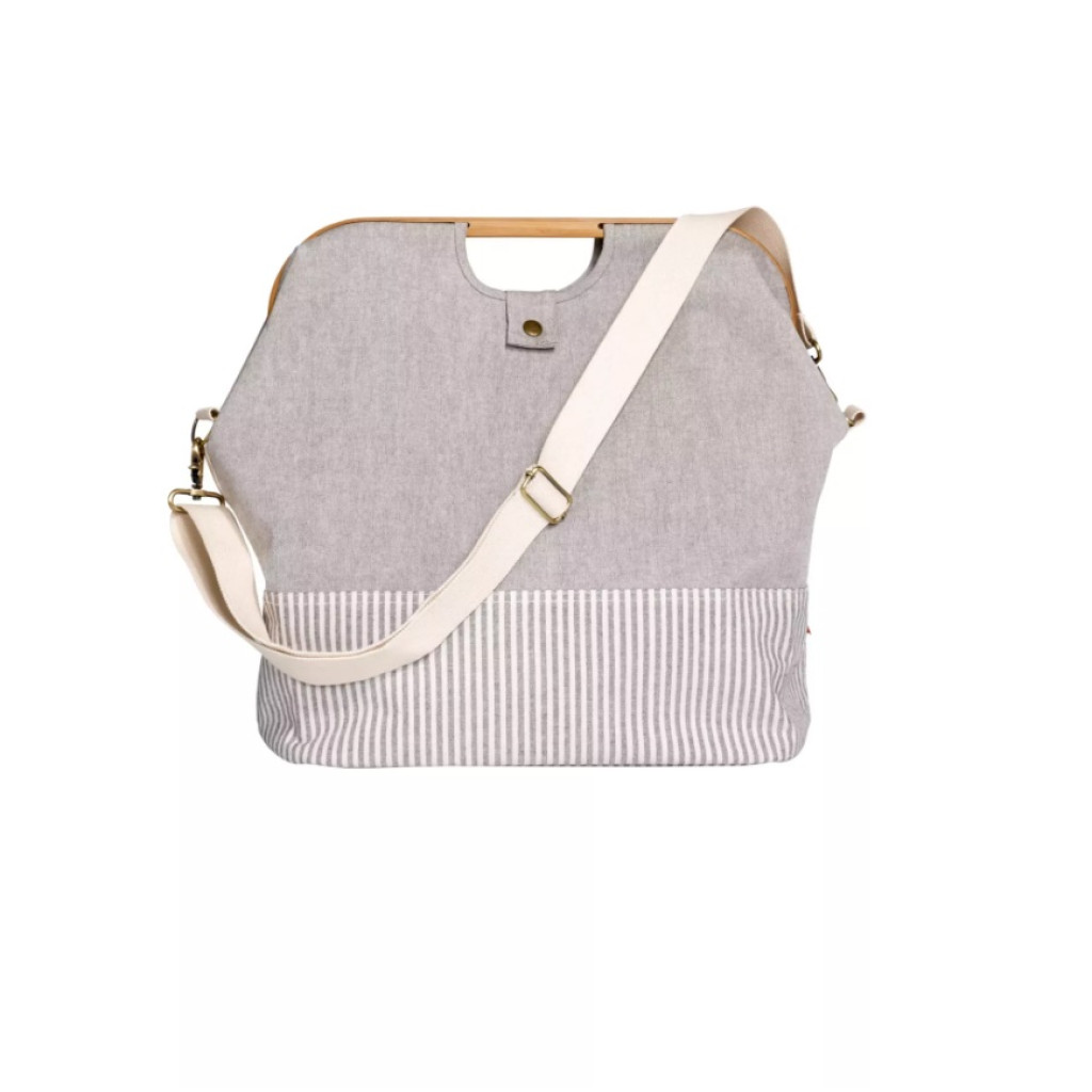 Модель виготовлена з міцного текстилю та доповнена жорсткими бамбуковими ручками, які надають конструкції стійкості та зручності у використанні. Сумка має продуманий формат, внутрішнє покриття з водовідштовхувальними властивостями та зручний ремінь для перенесення. Лаконічний сірий дизайн робить її практичною не лише для творчого простору, а й для поїздок.