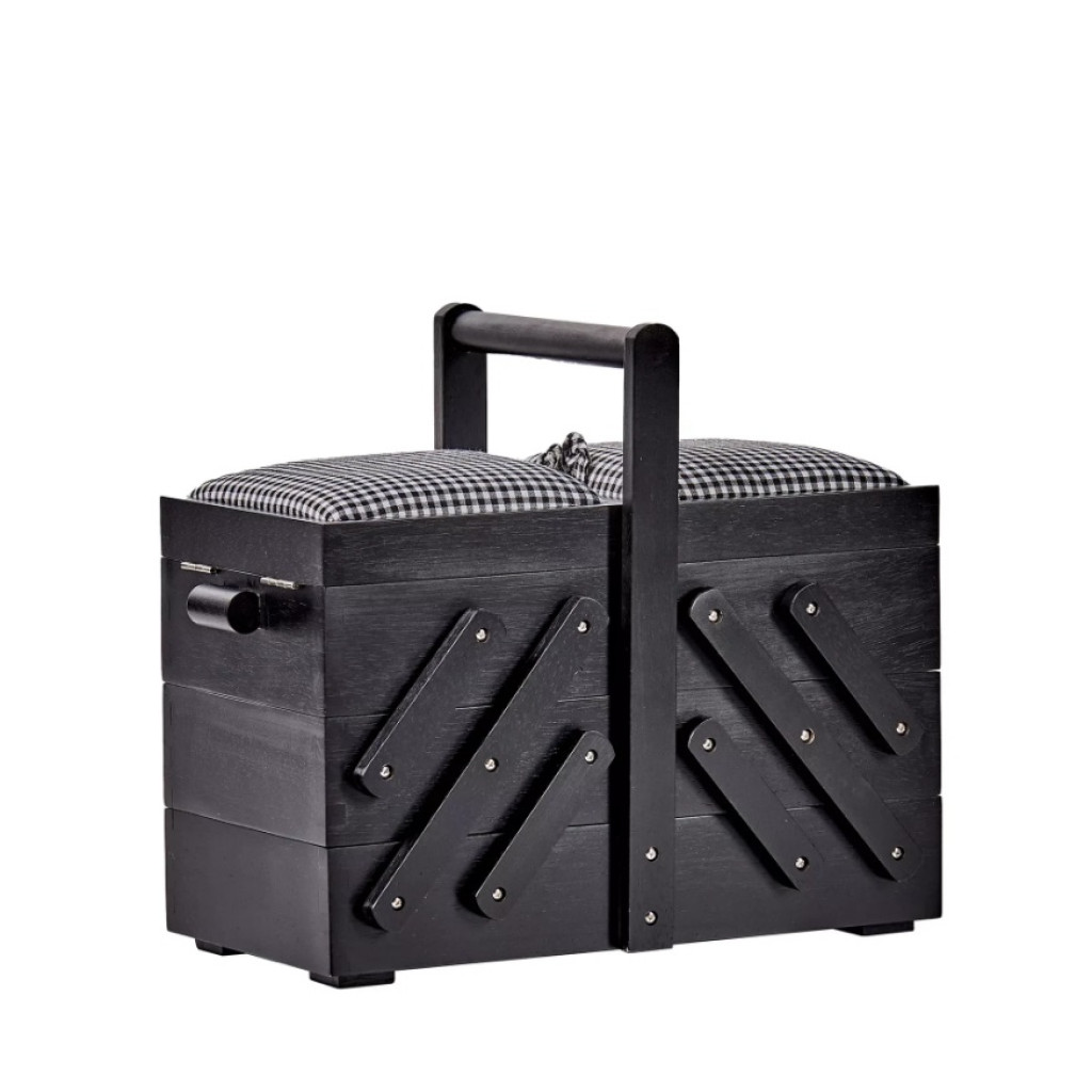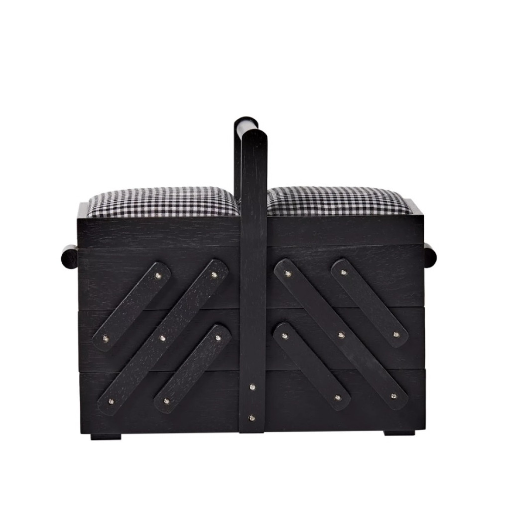 612574 Дерев'яна шкатулка для шиття розмір M, чорна з білою тканининою в клітинку, 36x19x30 см, Prym