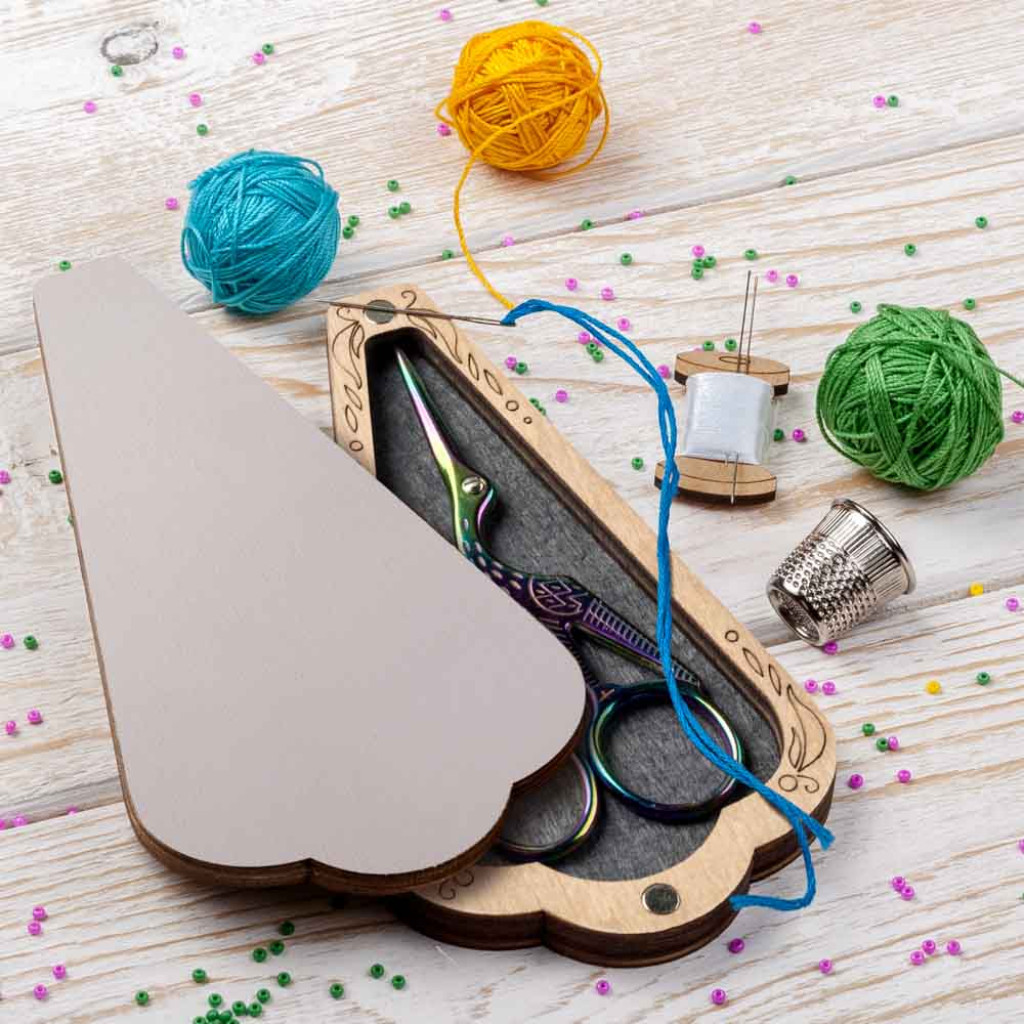 Скринька для ножиць Wonderland Crafts призначена для зручного та безпечного зберігання рукодільних ножиць. Вона допомагає захистити леза від пошкоджень, а також підтримувати порядок на робочому місці під час вишивання, шиття та інших видів рукоділля.