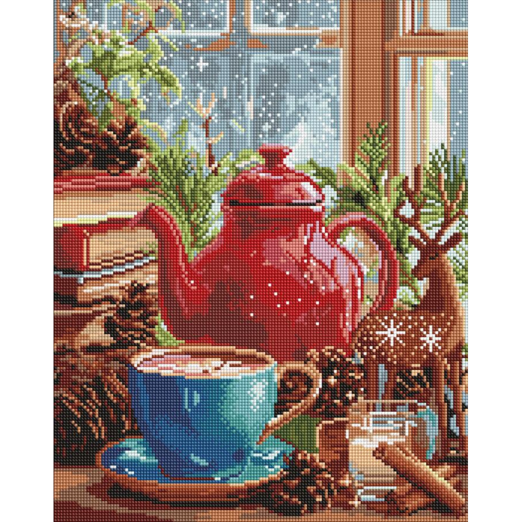 AMO20016 Ideyka Алмазна мозаїка - Зимова атмосфера вдома 40х50 см (круглі, на підрамнику, АМО-20016) ©art_selena_ua