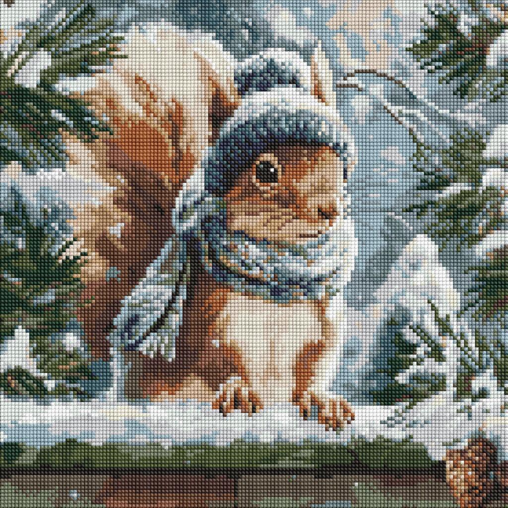 AMO20019 Ideyka Алмазна мозаїка - Зимове білченя 40х40 см (круглі, на підрамнику, АМО-20019) ©art_selena_ua