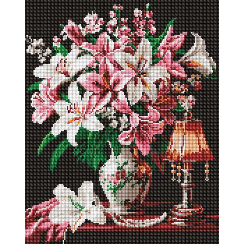 AMO20026 Ideyka Алмазна мозаїка - Витончені лілії 40х50 см (круглі, на підрамнику, АМО-20026) ©sophiia_іllustrations