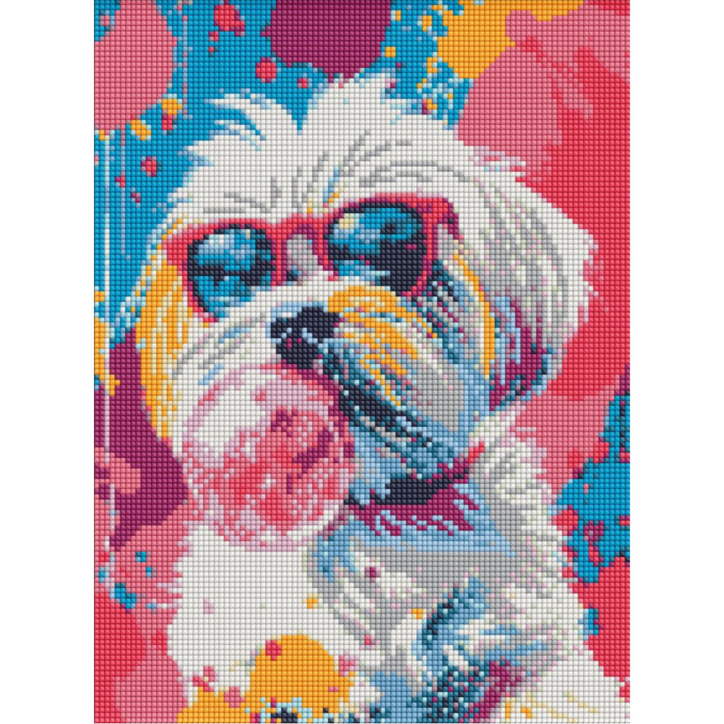 AMO20097 Ideyka Алмазна мозаїка - Зухвалий пес у рожевому 30х40 см (круглі, на підрамнику, АМО-20097) ©art_selena_ua