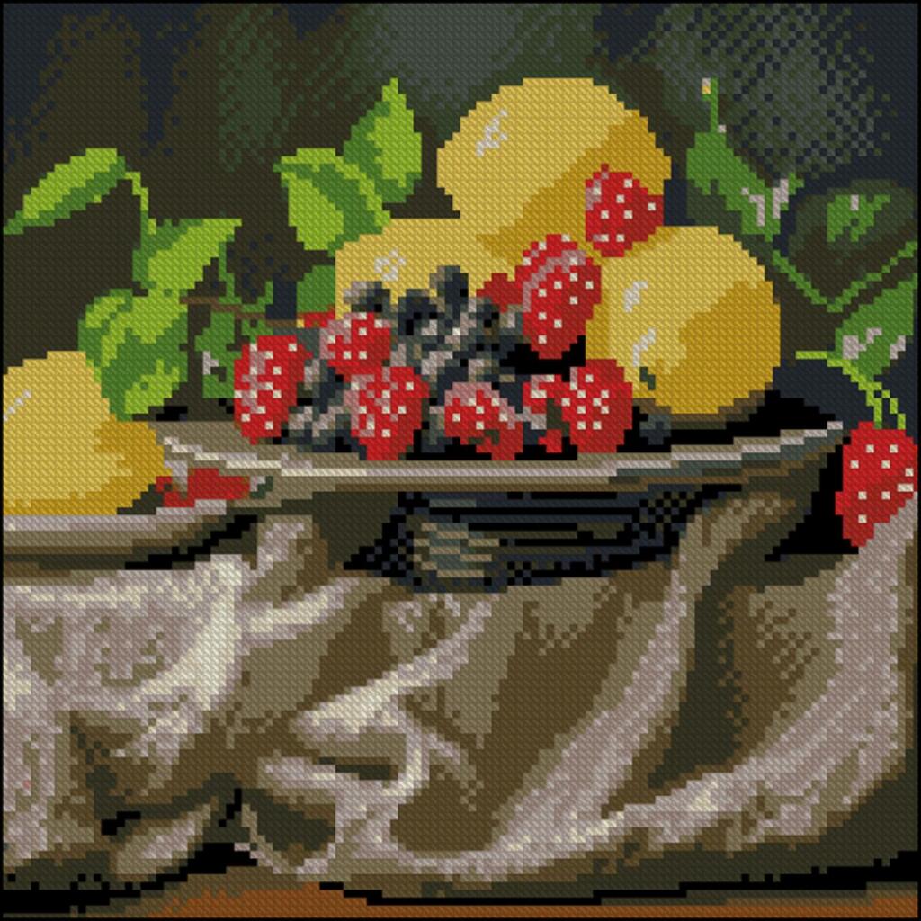 FZ3030-17 Strateg Алмазна мозаїка - Лимони та ягоди, 30x30 см (квадратні, на підрамнику, Стратег)