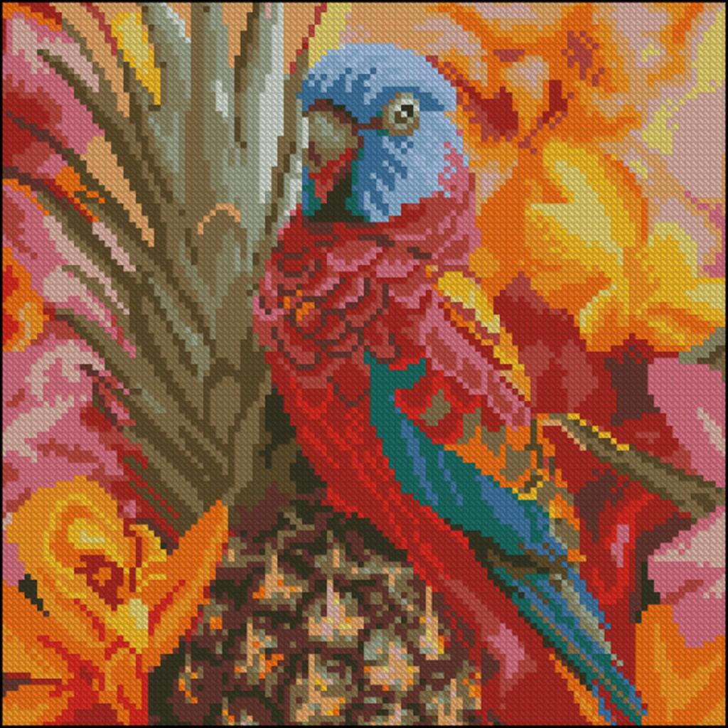 FZ3030-22 Strateg Алмазна мозаїка - Тропічна папуга, 30x30 см (квадратні, на підрамнику, Стратег)