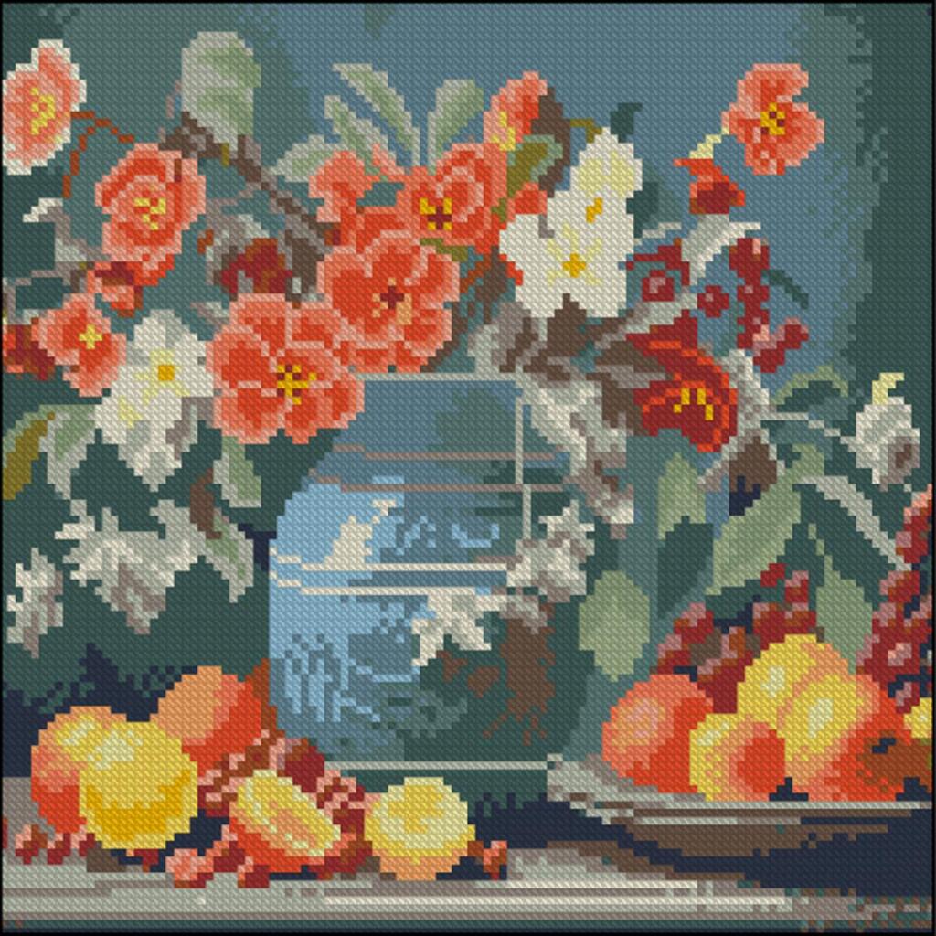 FZ3030-23 Strateg Алмазна мозаїка - Квіти й фрукти, 30x30 см (квадратні, на підрамнику, Стратег)