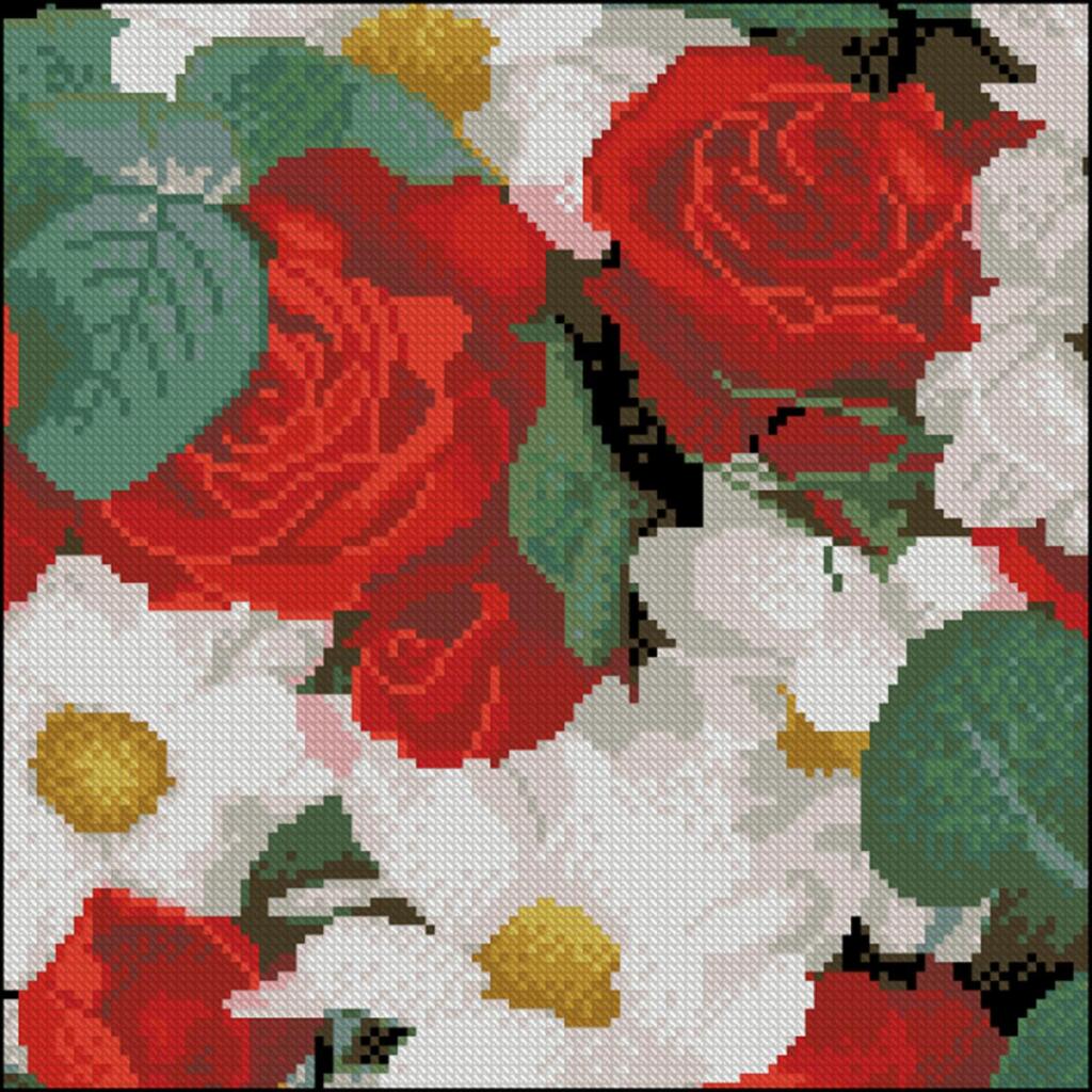 FZ3030-26 Strateg Алмазна мозаїка - Троянди й ромашки, 30x30 см (квадратні, на підрамнику, Стратег)