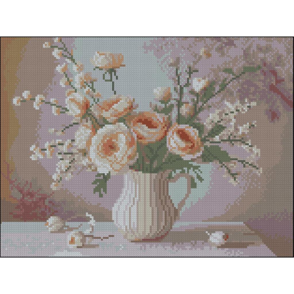 FZ3040-19 Strateg Алмазна мозаїка - Кремові квіти, 30x40 см (квадратні, на підрамнику, Стратег)