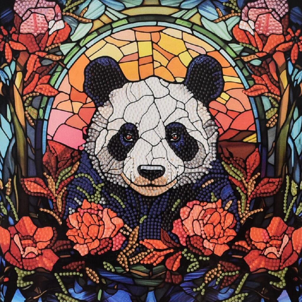 DEEX16305 Strateg Алмазна мозаїка - Панда серед троянд 30x30 см (круглі, на підрамнику, Стратег)
