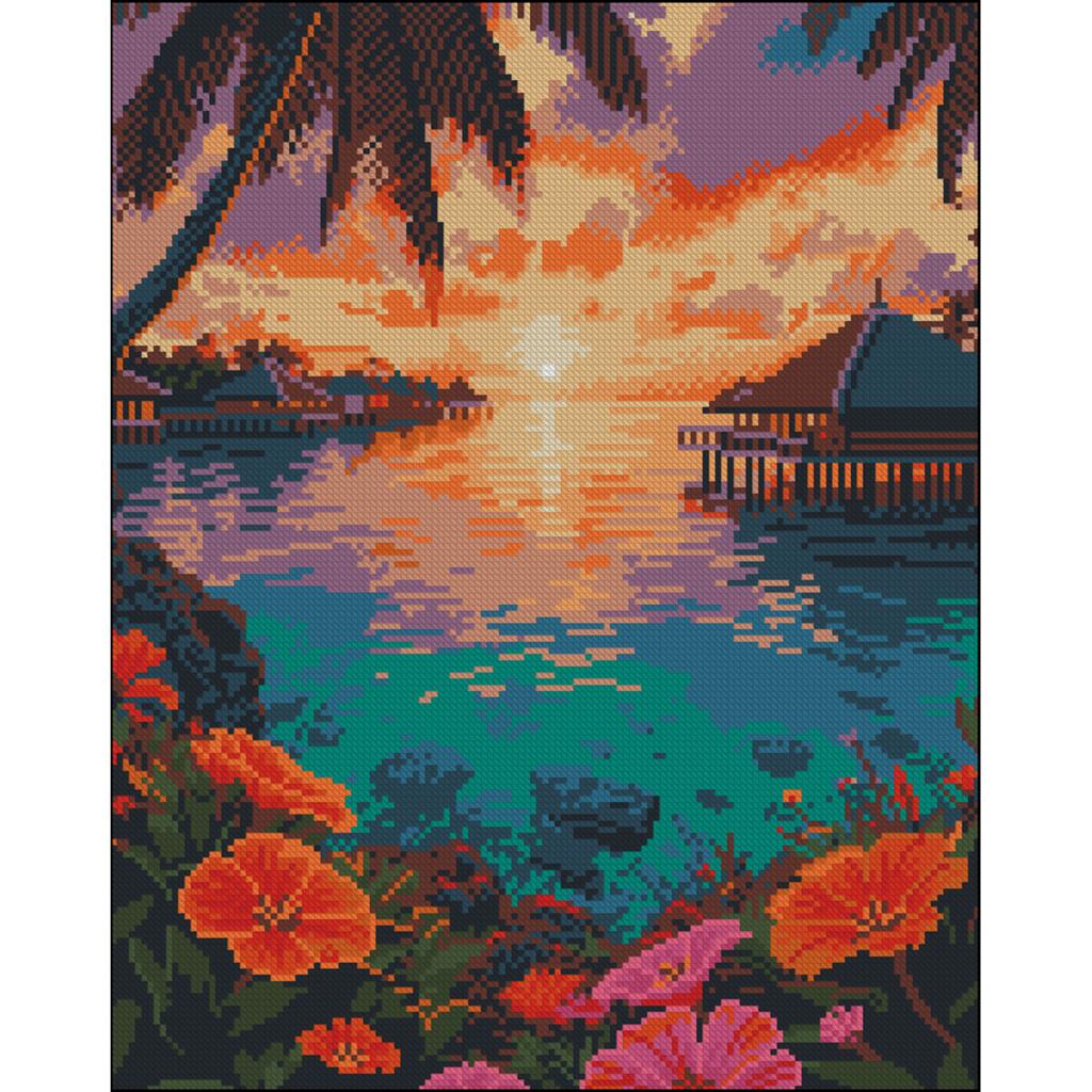 ZAV4050-50 Strateg Алмазна мозаїка - Тропічний захід, 40x50 см (круглі, на підрамнику, Стратег)