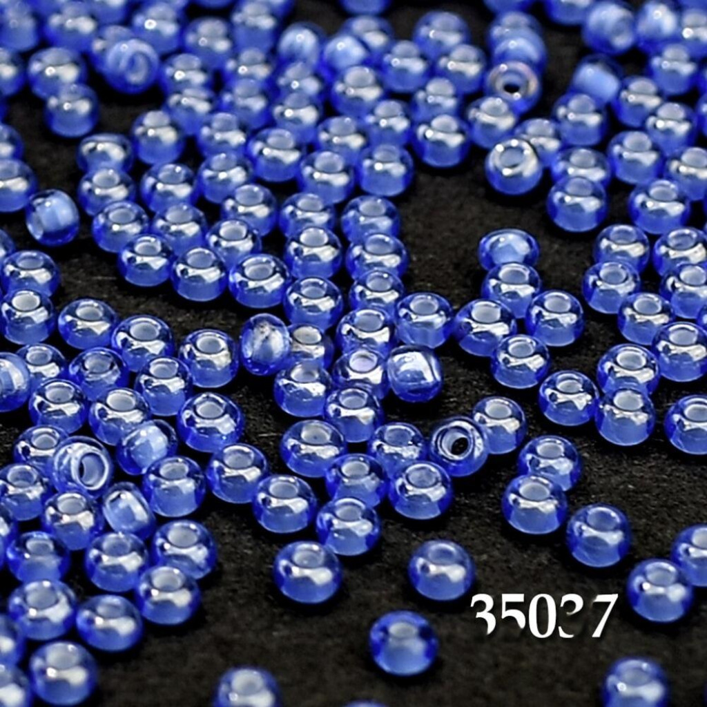 Фарбування – Transparent Silver Lined – напівпрозорий бісер із тонованого скла з пофарбованою в срібний серединкою. Це найблискучіший вид бісеринок, його дуже люблять майстрині за приголомшливий блиск. В побуті зустрічається під назвою: блискучий, вогник, срібло. Завдяки сріблястій серединці намистинки виблискують, але з часом, швидше за все, потьмяніють, хоча загалом цей тип намистин стійкий до світлової та хімічної дії. У вишивці він помітний, але не дає чітких меж. Рекомендується використовувати для акцентних ділянок, дуже гарно виглядає сяйво у вишитих іконах. Небагато такого бісеру використовується для вишивання фону ікон. Дуже гарний для плетіння сувенірів та квітів.