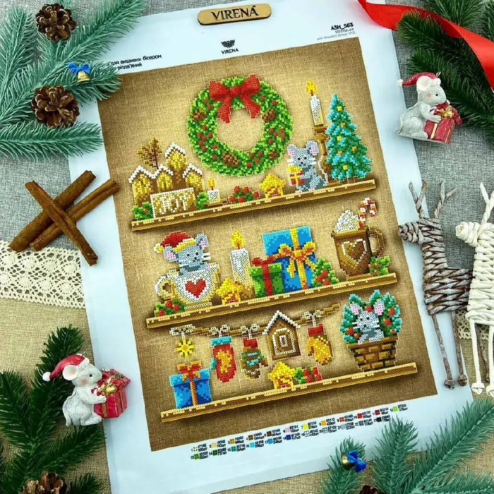 А3Н_583 Virena Заготовка для вишивки бісером - Семплер різдвяний 27х36,5 см (схема на габардині)