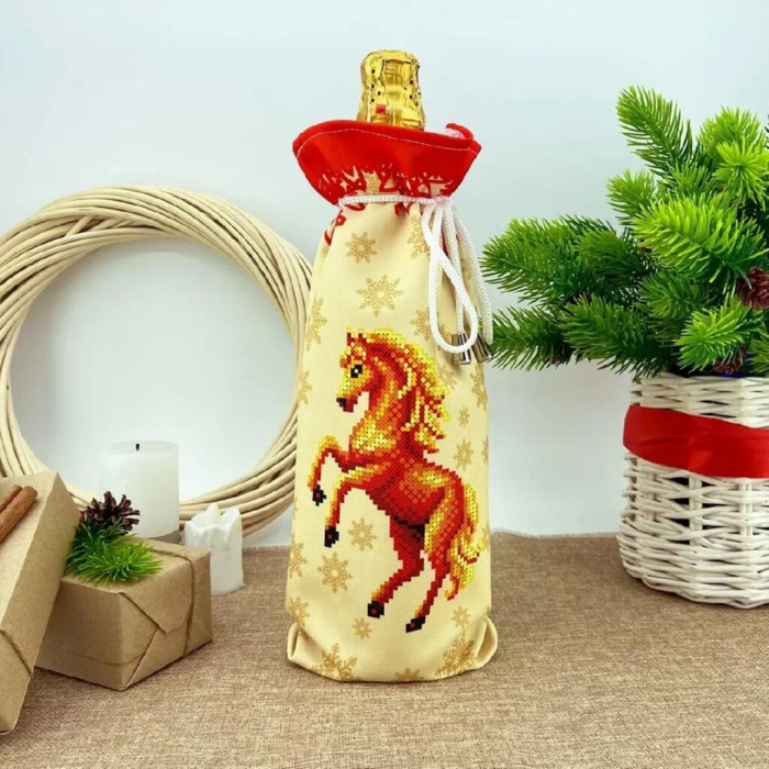Подарункова сумка для пляшки, для вишивки бісером, має чітку схему з насиченими кольорами та високою якістю друку на якісному габардині. Після прання схема для вишивки залишається на тканині. Виріб повністю пошитий та не потребує додаткових операцій зі зшивання.