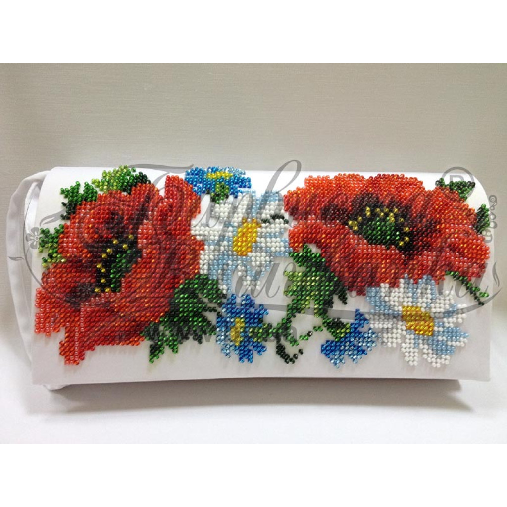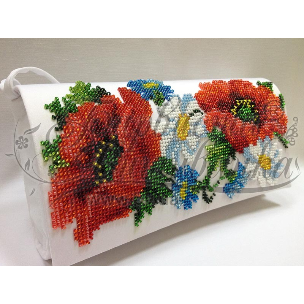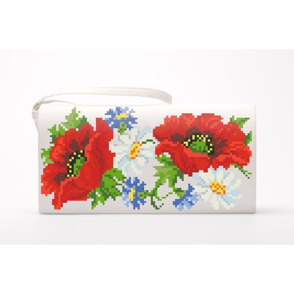 Заготовка для вишивки клатча Маки, ромашки, волошки призначена для часткової зашивки бісером або нитками. Схема надрукована на батисті білого кольору екологічно чистими стійкими фарбами, що не змиваються після прання. Деталі клатча підготовлені з урахуванням зручності вишивання та акуратного фінального складання виробу.