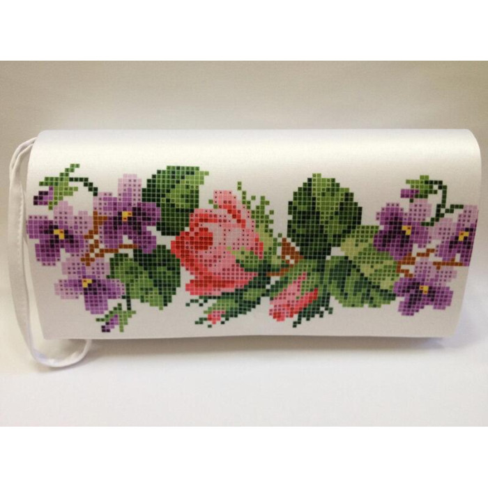 КЛ022шБ1301 Барвиста вишиванка Заготовка для вишивки - Клатч Троянди і фіалки 21x13 см шовк, білий