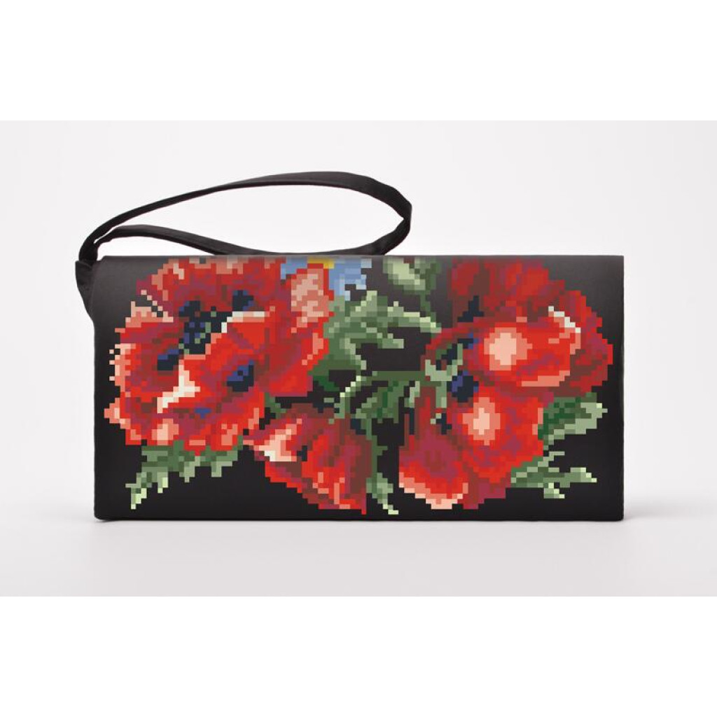 Заготовка для вишивки клатча Маки червоні призначена для часткової зашивки бісером або нитками. Схема надрукована на батисті чорного кольору екологічно чистими стійкими фарбами, що не змиваються після прання. Деталі клатча підготовлені з урахуванням зручності вишивання та акуратного фінального складання виробу.