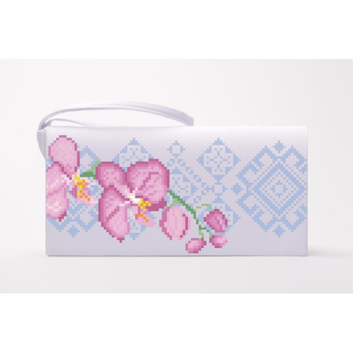 КЛ087хБ1301 Барвиста вишиванка Заготовка для вишивки - Клатч Ніжні орхідеї 21x13 см батист, білий