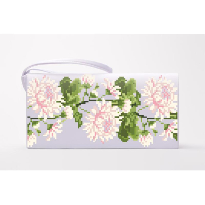 КЛ186шБ1301 Барвиста вишиванка Заготовка для вишивки - Клатч Ніжні хризантеми 21x13 см шовк, білий