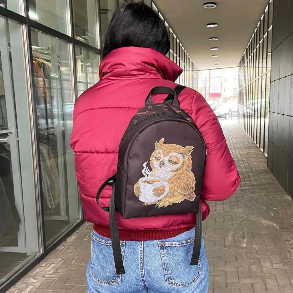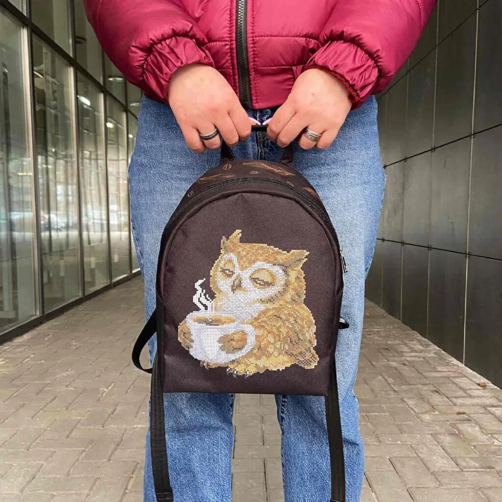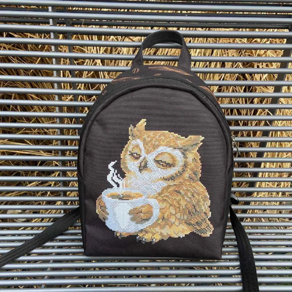 Рюкзак_806 Virena Заготовка для вишивки бісером - Рюкзак Сова з чашкою кави, 24x30x8 см