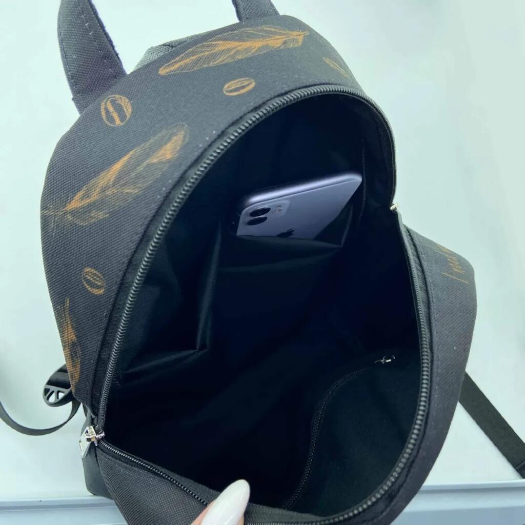 Рюкзак пошитий із міцної сумочної тканини Оксфорд, яка добре тримає форму та підходить для щоденного використання. Спинка, дно та бокові частини додатково ущільнені формуючим матеріалом, тому виріб виглядає акуратно та зберігає форму під час носіння. Всередині є якісна підкладка з кількома кишеньками, а також внутрішній доступ до зони вишивки для зручної роботи.