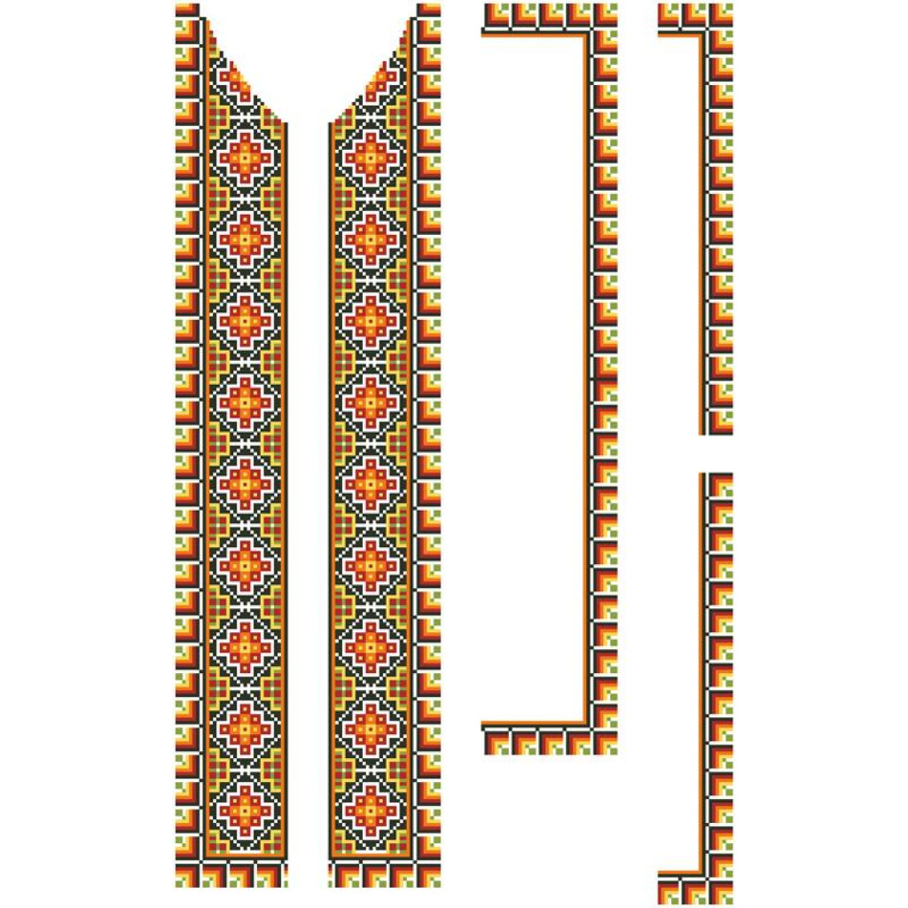 Заготовка для вишивки вставки до чоловічої сорочки Прикарпаття розроблена для техніки часткової зашивки бісером або нитками. Схема надрукована на шовковому полотні білого кольору екологічно чистими фарбами, які не зникають після прання. Тканина розкроєна прямокутниками з великим запасом, що забезпечує зручність у роботі та подальшому пошитті виробу.