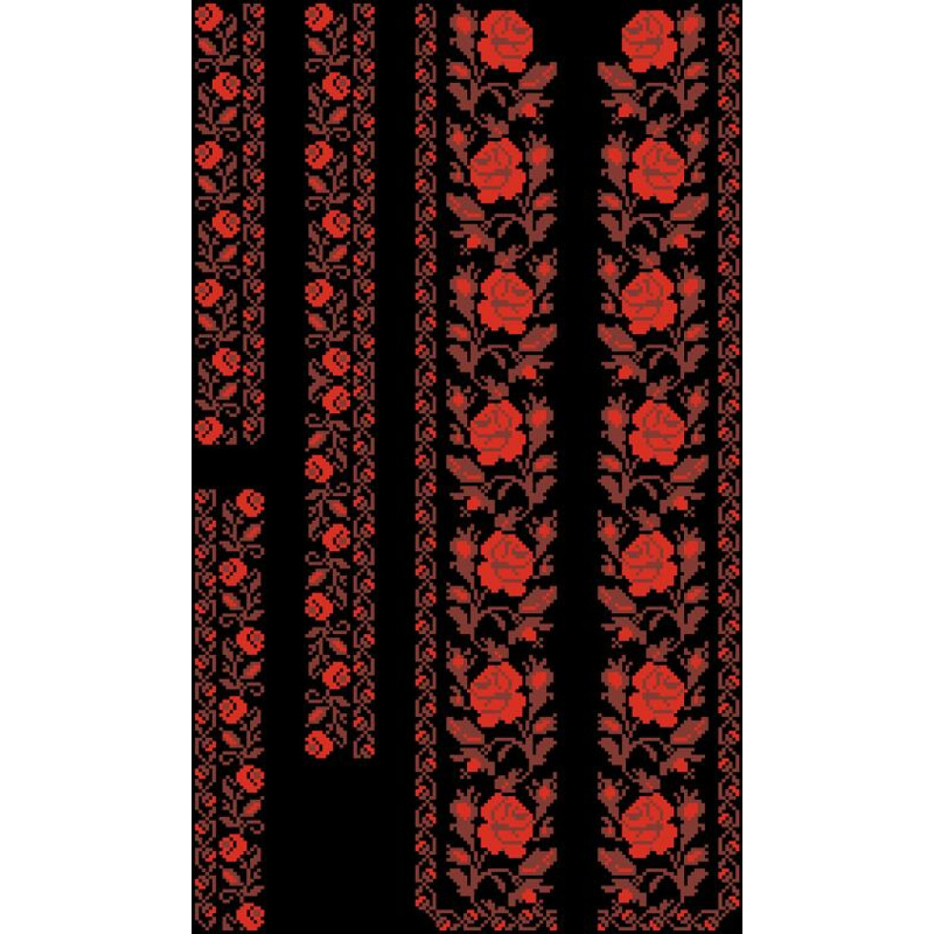 Заготовка для вишивки вставки до чоловічої сорочки Весільні пари розроблена для техніки часткової зашивки бісером або нитками. Схема надрукована на шовковому полотні чорного кольору екологічно чистими фарбами, які не зникають після прання. Тканина розкроєна прямокутниками з великим запасом, що забезпечує зручність у роботі та подальшому пошитті виробу.