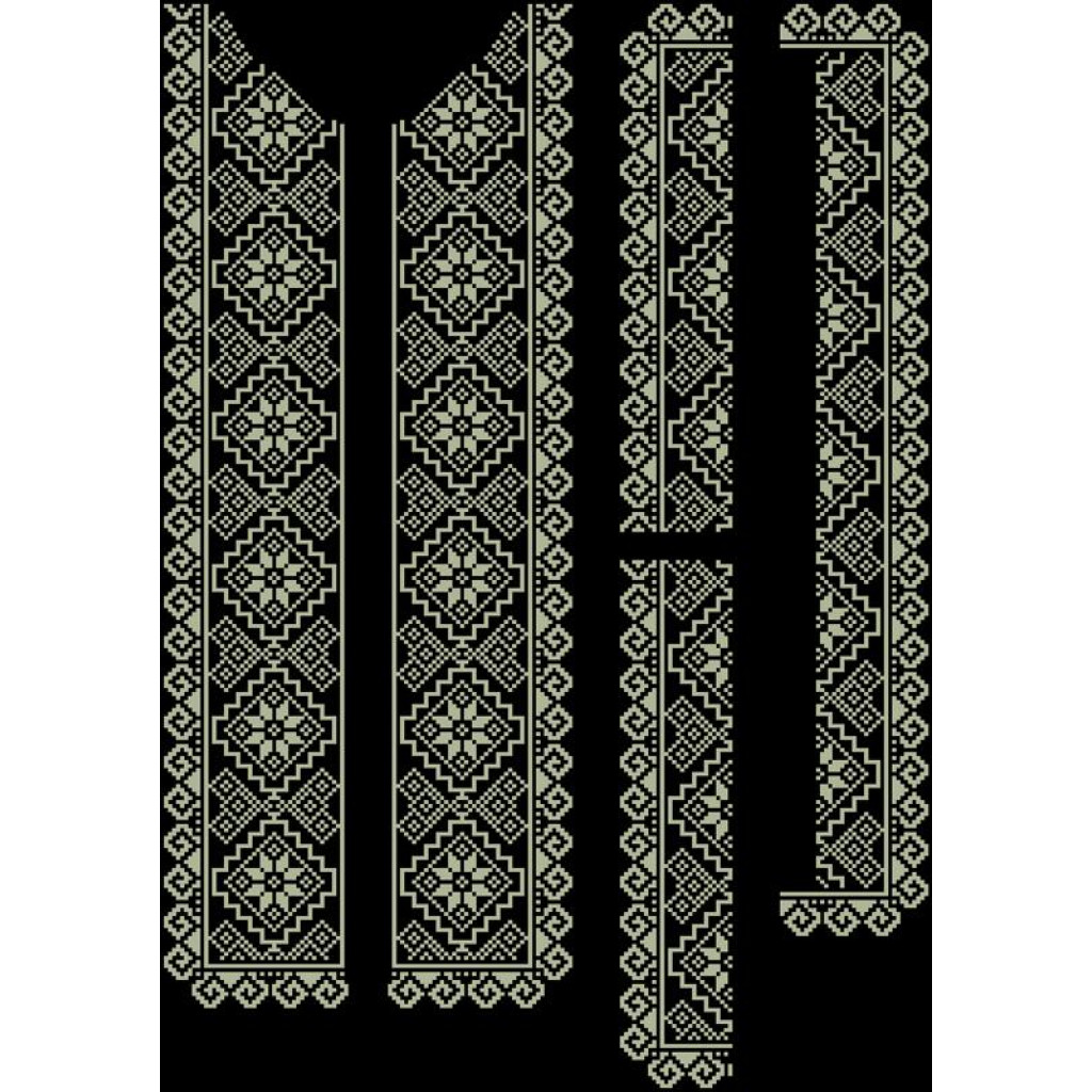 Заготовка для вишивки вставки до чоловічої сорочки Мережка розроблена для техніки часткової зашивки бісером або нитками. Схема надрукована на шовковому полотні чорного кольору екологічно чистими фарбами, які не зникають після прання. Тканина розкроєна прямокутниками з великим запасом, що забезпечує зручність у роботі та подальшому пошитті виробу.