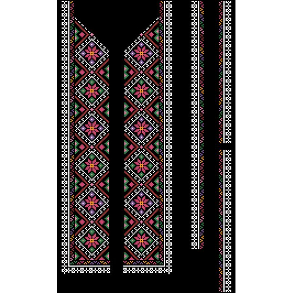Заготовка для вишивки вставки до чоловічої сорочки Борщівська розроблена для техніки часткової зашивки бісером або нитками. Схема надрукована на шовковому полотні чорного кольору екологічно чистими фарбами, які не зникають після прання. Тканина розкроєна прямокутниками з великим запасом, що забезпечує зручність у роботі та подальшому пошитті виробу.