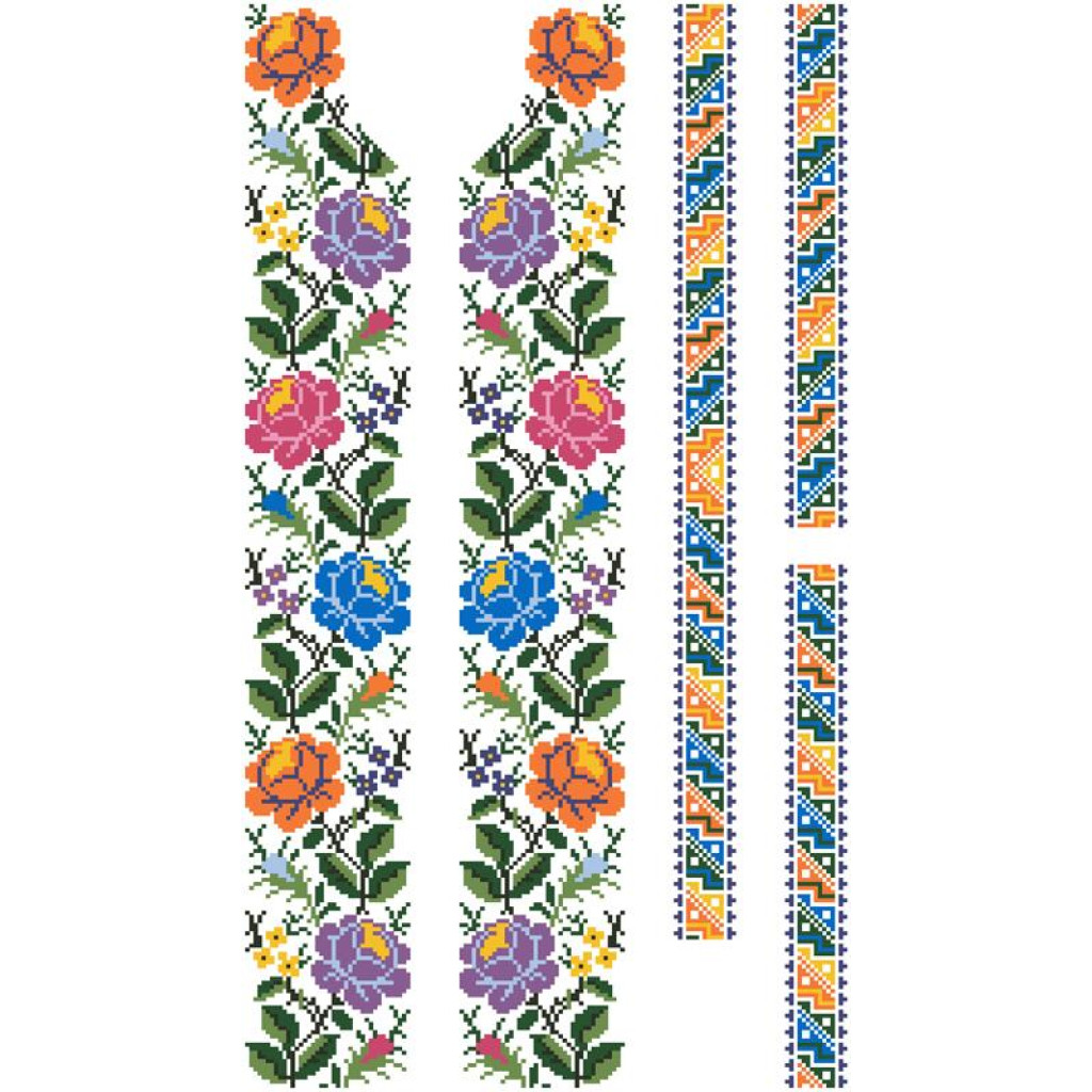 Заготовка для вишивки вставки до чоловічої сорочки Одеська троянда розроблена для техніки часткової зашивки бісером або нитками. Схема надрукована на шовковому полотні білого кольору екологічно чистими фарбами, які не зникають після прання. Тканина розкроєна прямокутниками з великим запасом, що забезпечує зручність у роботі та подальшому пошитті виробу.