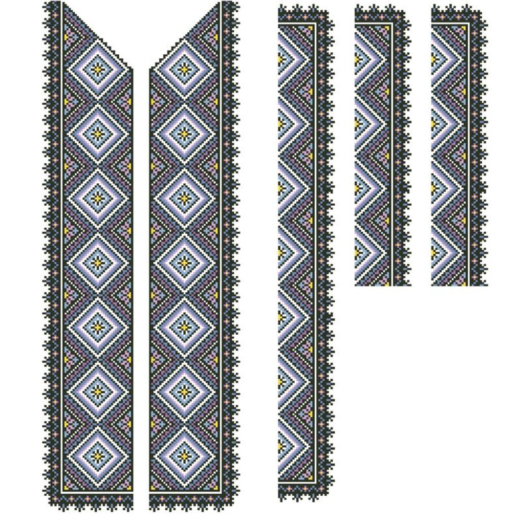 Заготовка для вишивки вставки до чоловічої сорочки Загадкова розроблена для техніки часткової зашивки бісером або нитками. Схема надрукована на шовковому полотні білого кольору екологічно чистими фарбами, які не зникають після прання. Тканина розкроєна прямокутниками з великим запасом, що забезпечує зручність у роботі та подальшому пошитті виробу.