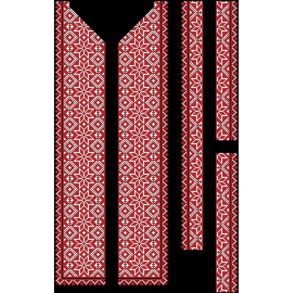 Заготовка для вишивки вставки до чоловічої сорочки Мамине благословення розроблена для техніки часткової зашивки бісером або нитками. Схема надрукована на шовковому полотні чорного кольору екологічно чистими фарбами, які не зникають після прання. Тканина розкроєна прямокутниками з великим запасом, що забезпечує зручність у роботі та подальшому пошитті виробу.
