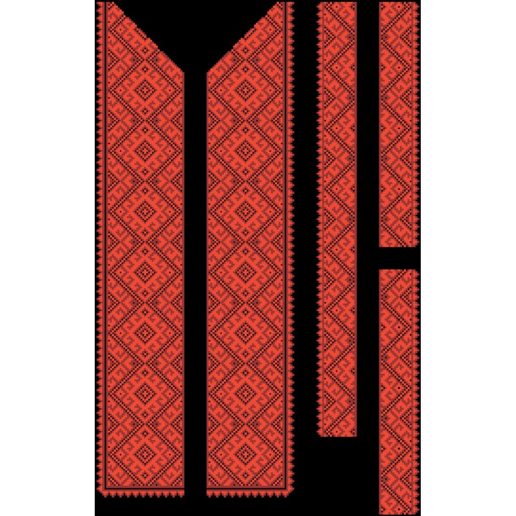 Заготовка для вишивки вставки до чоловічої сорочки На долю розроблена для техніки часткової зашивки бісером або нитками. Схема надрукована на шовковому полотні чорного кольору екологічно чистими фарбами, які не зникають після прання. Тканина розкроєна прямокутниками з великим запасом, що забезпечує зручність у роботі та подальшому пошитті виробу.