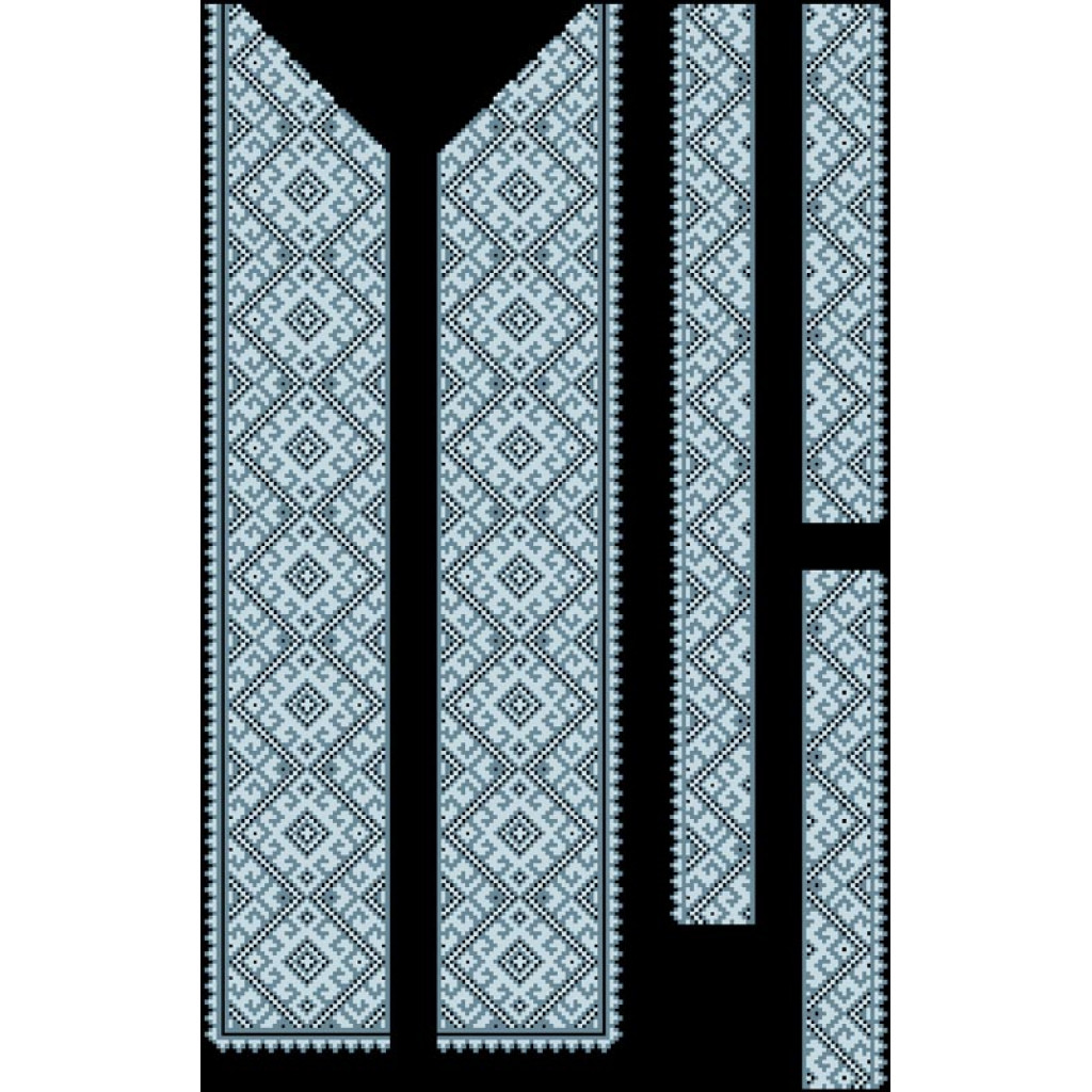 Заготовка для вишивки вставки до чоловічої сорочки На долю розроблена для техніки часткової зашивки бісером або нитками. Схема надрукована на шовковому полотні чорного кольору екологічно чистими фарбами, які не зникають після прання. Тканина розкроєна прямокутниками з великим запасом, що забезпечує зручність у роботі та подальшому пошитті виробу.