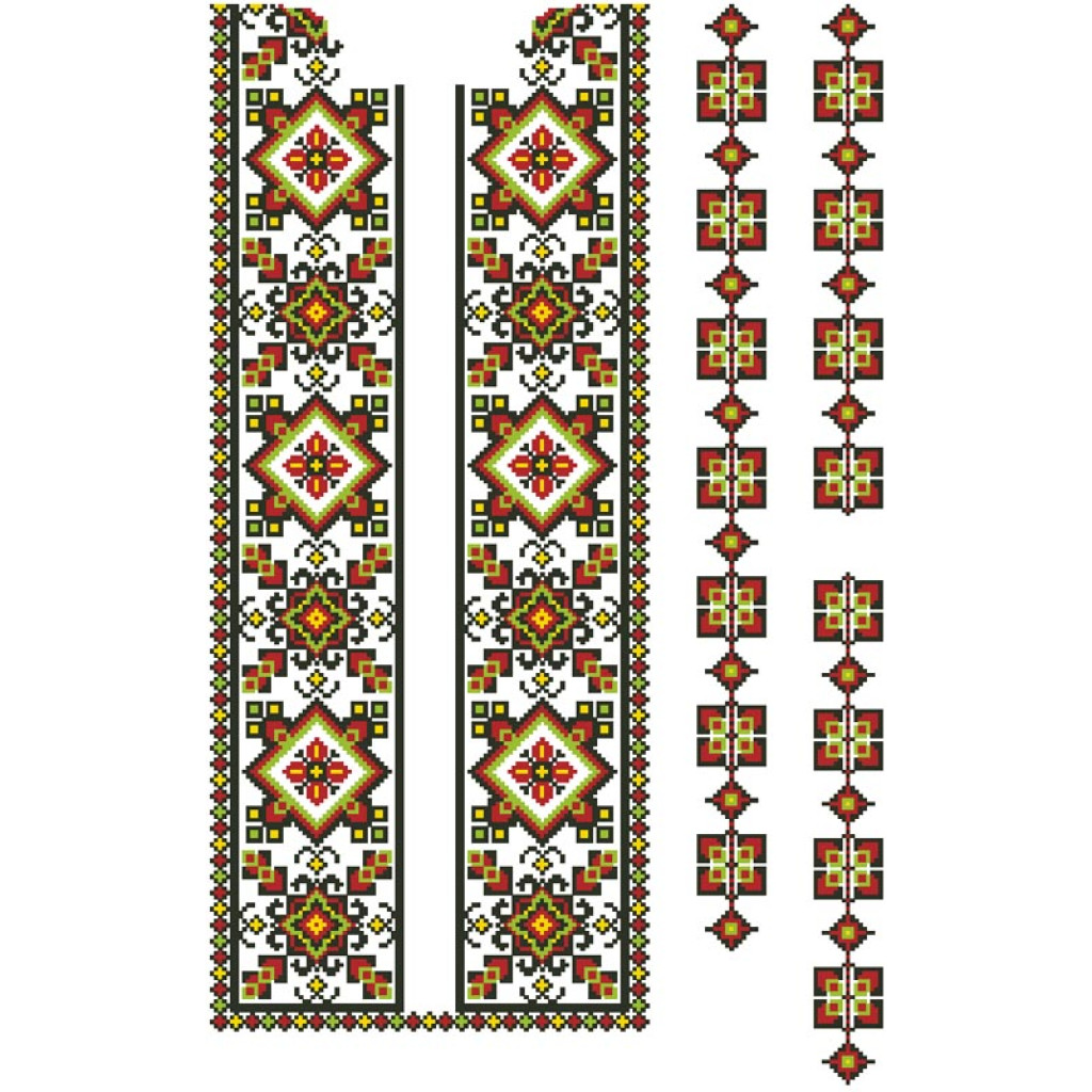 Заготовка для вишивки вставки до чоловічої сорочки Намисто розроблена для техніки часткової зашивки бісером або нитками. Схема надрукована на шовковому полотні білого кольору екологічно чистими фарбами, які не зникають після прання. Тканина розкроєна прямокутниками з великим запасом, що забезпечує зручність у роботі та подальшому пошитті виробу.