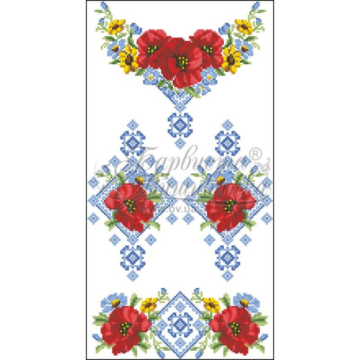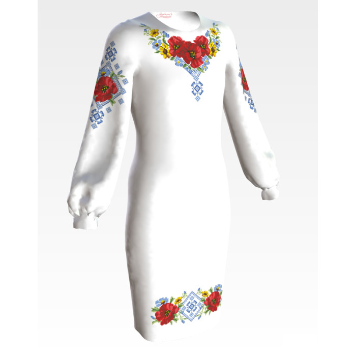 Заготовка для вишивання дитячої сукні Маки орнамент призначена для вишивки бісером або нитками. Схема надрукована на габардині білого кольору екологічно чистими фарбами, які залишаються чіткими навіть після прання. Завдяки якісному розкрою тканина зручна для вишивання та подальшого пошиття.