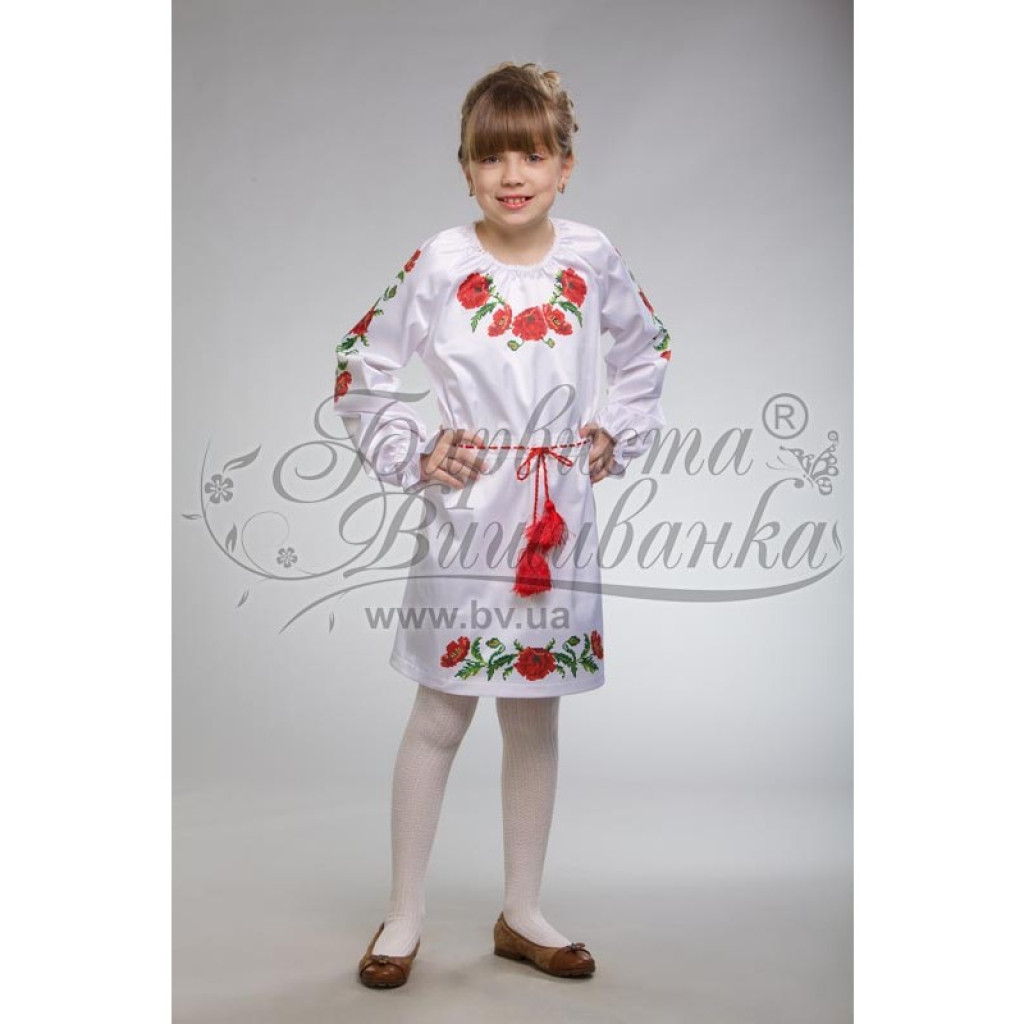 ПД004пБ40нн Барвиста вишиванка Заготовка для вишивки - Сукня для дівчинки 9-12 років, габардин, білий