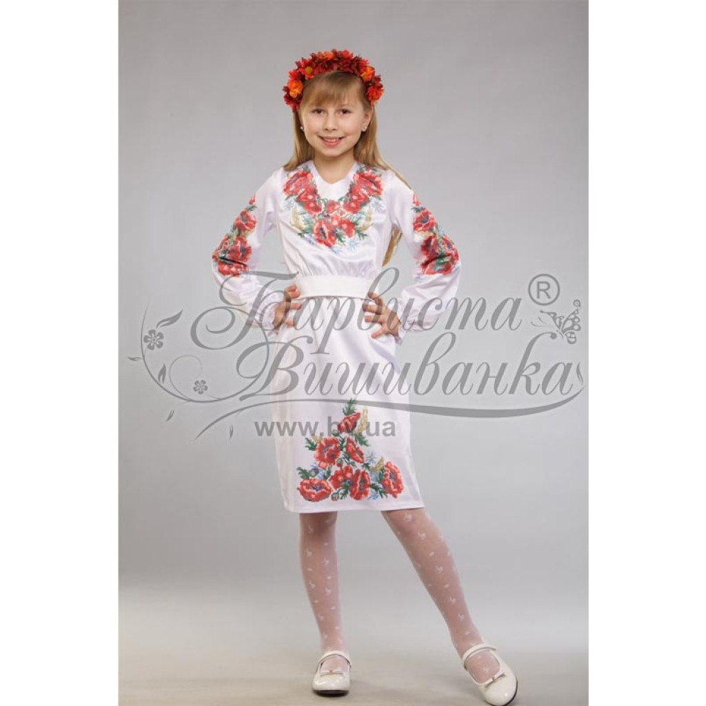 ПД012пБ40нн Барвиста вишиванка Заготовка для вишивки - Сукня для дівчинки 9-12 років, габардин, білий