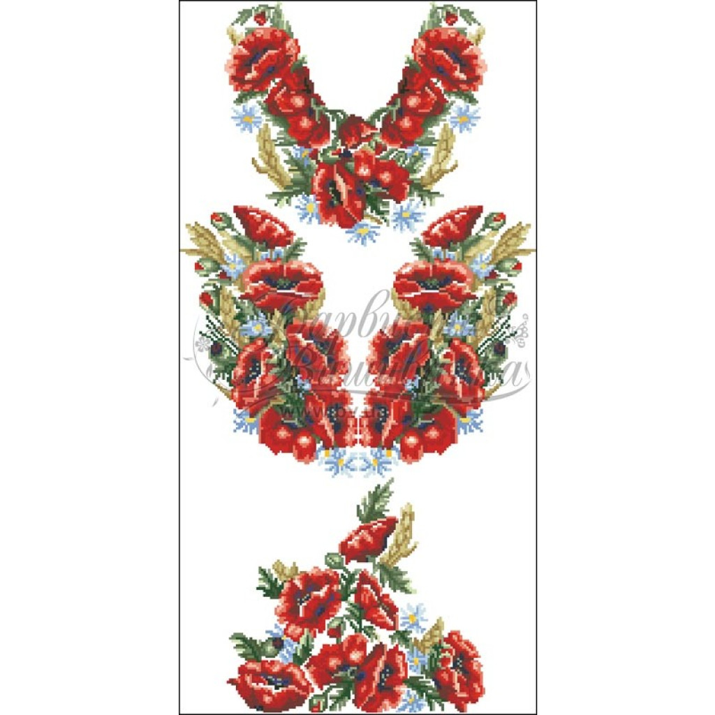 Заготовка для вишивання дитячої сукні Червоні маки, ромашки, колоски призначена для вишивки бісером або нитками. Схема надрукована на габардині білого кольору екологічно чистими фарбами, які залишаються чіткими навіть після прання. Завдяки якісному розкрою тканина зручна для вишивання та подальшого пошиття.