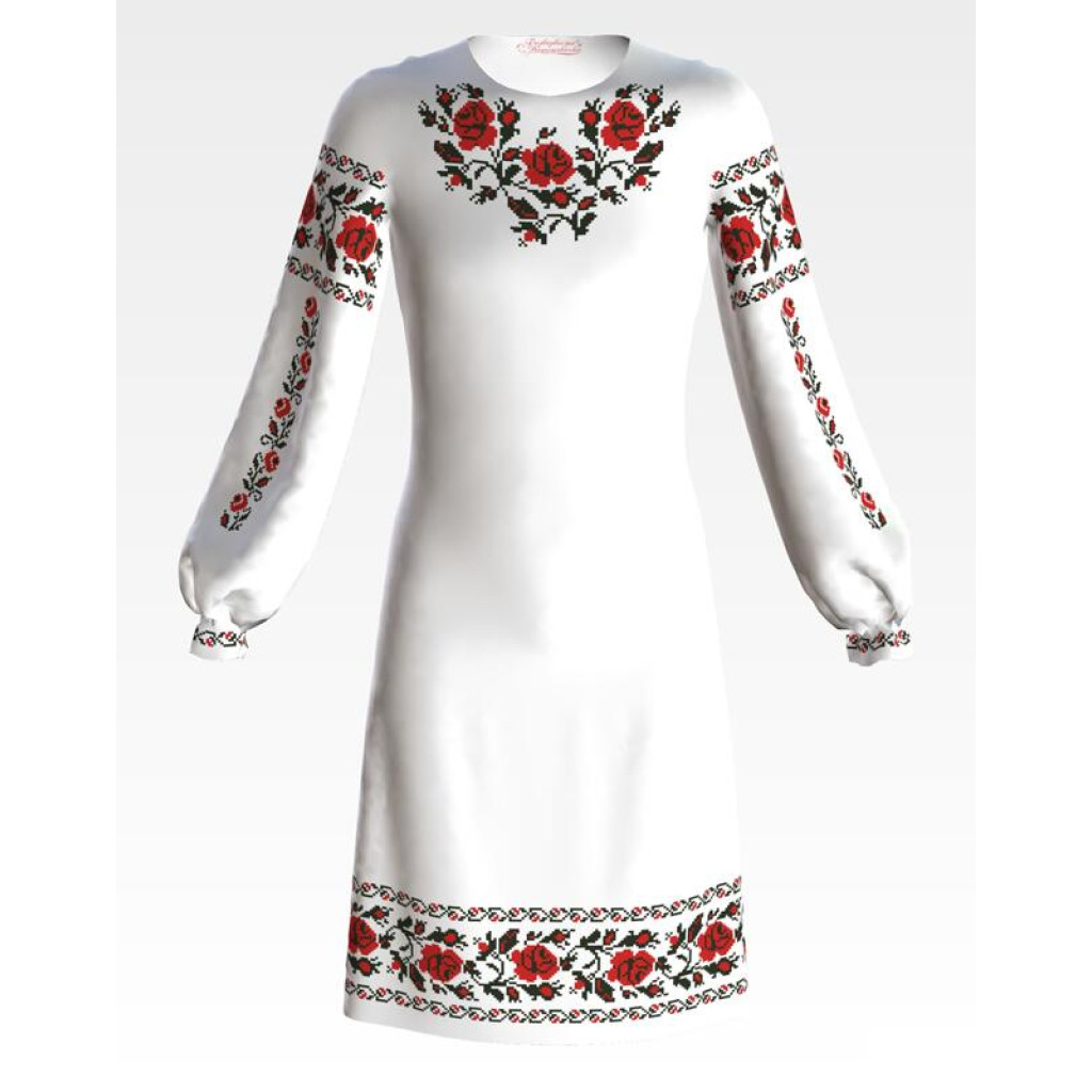 ПД024пБ40нн Барвиста вишиванка Заготовка для вишивки - Сукня для дівчинки 9-12 років, габардин, білий