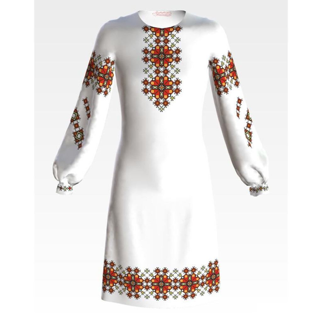ПД030пБ40нн Барвиста вишиванка Заготовка для вишивки - Сукня для дівчинки 9-12 років, габардин, білий