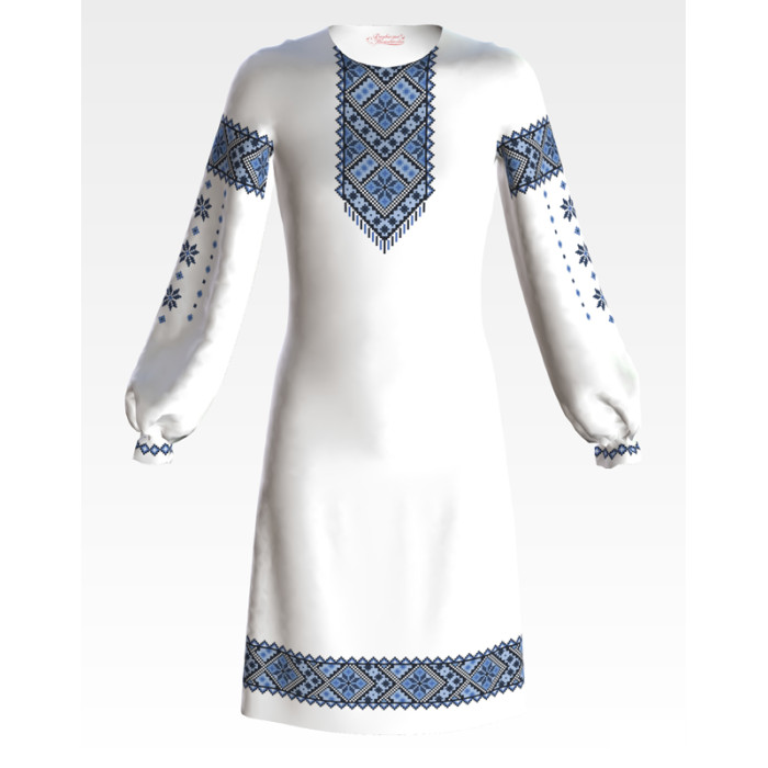 Заготовка для вишивання дитячої сукні Небесна блакить призначена для вишивки бісером або нитками. Схема надрукована на габардині білого кольору екологічно чистими фарбами, які залишаються чіткими навіть після прання. Завдяки якісному розкрою тканина зручна для вишивання та подальшого пошиття.