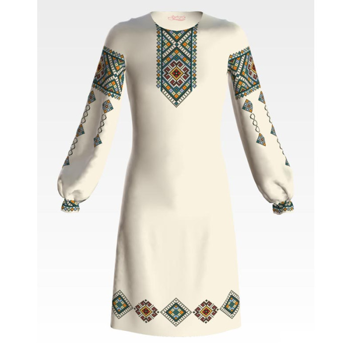 ПД084дМ40нн Барвиста вишиванка Заготовка для вишивки - Сукня для дівчинки 9-12 років, домоткане полотно, бежевий