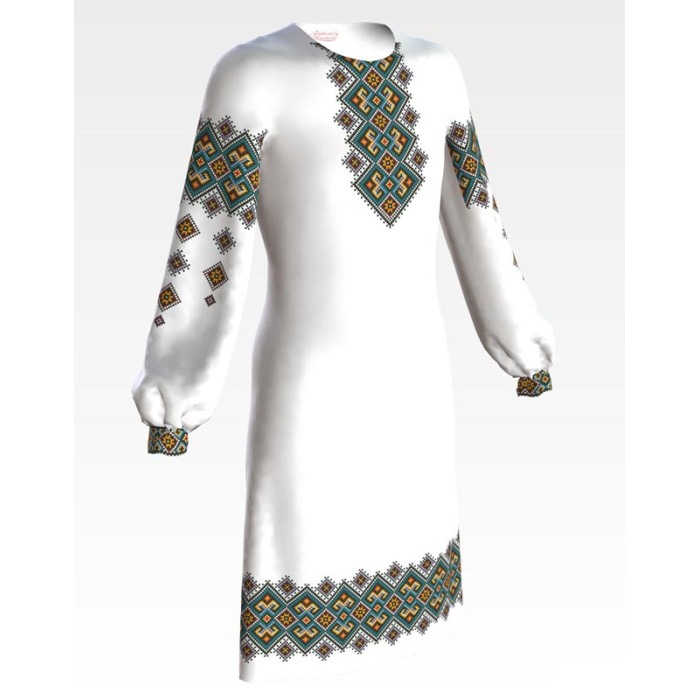 ПД081пБ40нн Барвиста вишиванка Заготовка для вишивки - Сукня для дівчинки 9-12 років, габардин, білий
