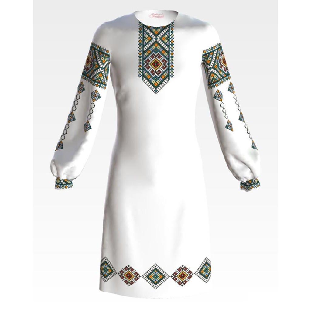 ПД084пБ40нн Барвиста вишиванка Заготовка для вишивки - Сукня для дівчинки 9-12 років, габардин, білий