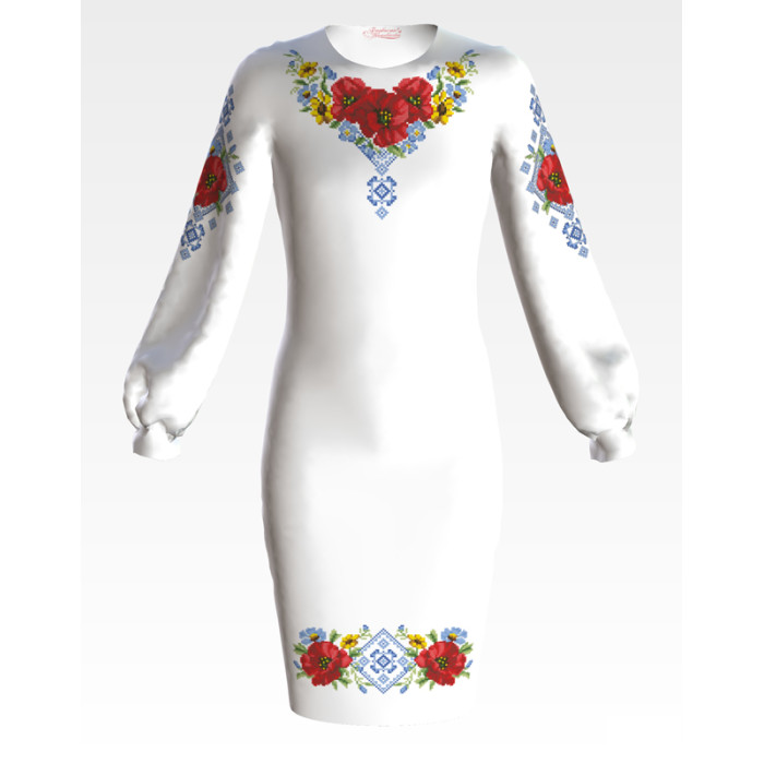 Заготовка для вишивання дитячої сукні Маки орнамент призначена для вишивки бісером або нитками. Схема надрукована на батисті білого кольору екологічно чистими фарбами, які залишаються чіткими навіть після прання. Завдяки якісному розкрою тканина зручна для вишивання та подальшого пошиття.