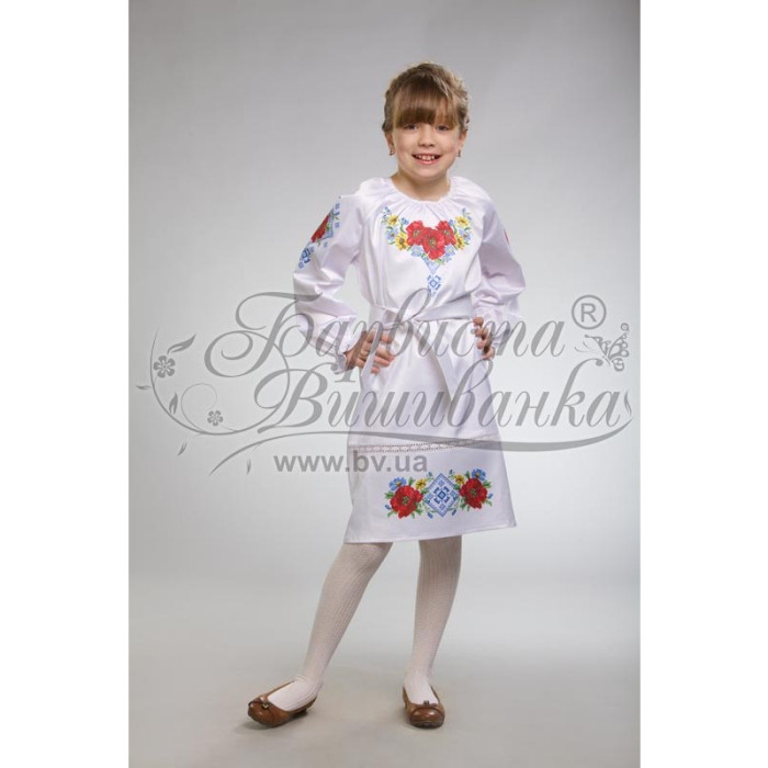 ПД003хБ40нн Барвиста вишиванка Заготовка для вишивки - Сукня для дівчинки 9-12 років, батист, білий